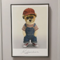 シーズー犬『かぼちゃん』がデニムのオーバーオールとボーダーシャツを身にまとい、ポケットに手をつっこんだちょっとかっこいいポーズを決めたアートポスター。