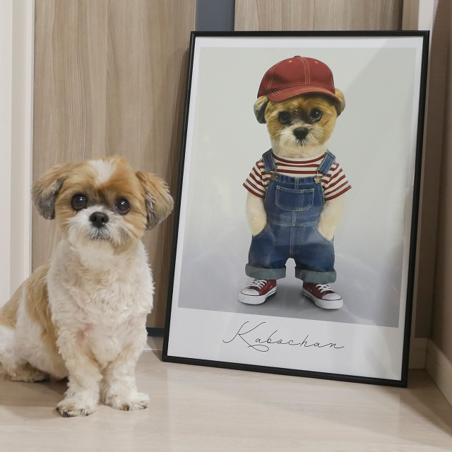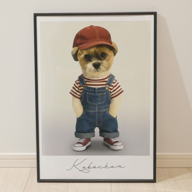 このアートポスターは、当アトリエのモデル犬『かぼちゃん』をベースにしたオリジナル作品で、見る人の心をほっこりと癒してくれること間違いなし。