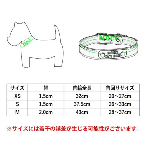 ■XS・・・首周 20-27cm、ベルト幅 1.5cm■S・・・首周 26-33cm、ベルト幅 1.5cm