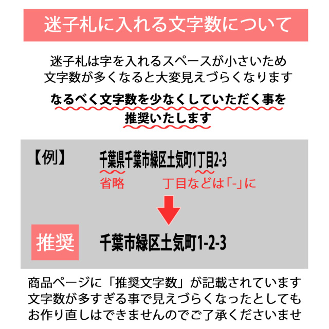 - 迷子札を取り付ける際はペットや飼い主様が怪我をなさらないようご注意ください。