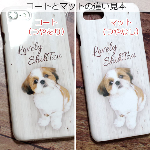 シーズー犬がモチーフとなった木目調デザインのスマートフォン・ハードケースです。