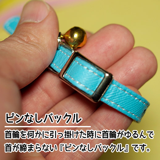 ※ピンなしバックルは事項防止のため、「ゆるんで外れてしまう事」を想定して作られております。活発な子や首輪が気になりやすい子の場合、首輪がゆるんでしまったら、都度、飼い主様が調整しなおしてあげてください。
