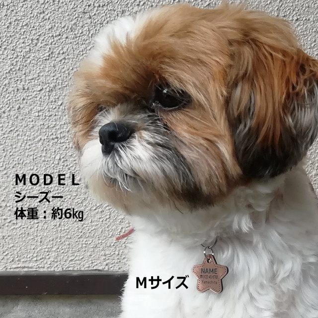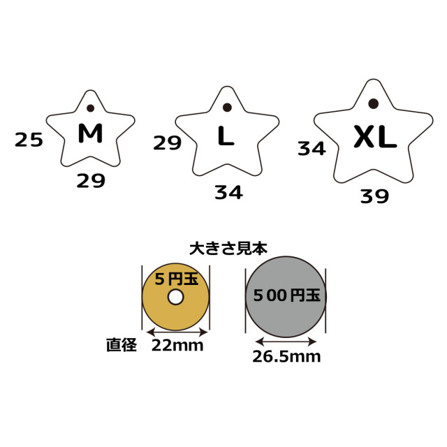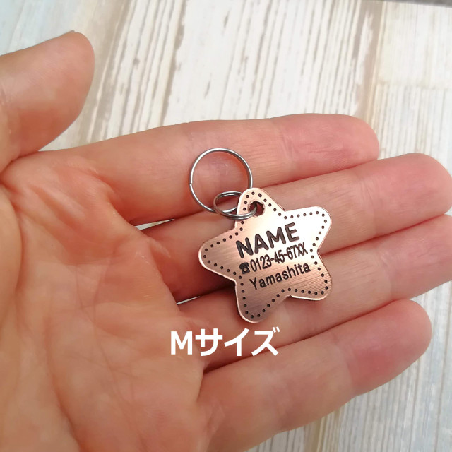 アクリル板を星型にカットして、ステッチ風にデザインした迷子札です。アクリル製でありながら表面はメタリックなブロンズ調の光沢があります。