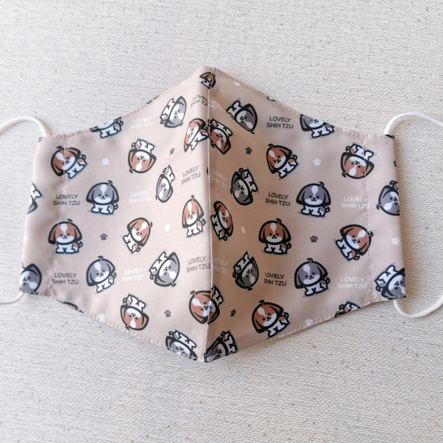 • 【ひも仕様】シーズーのイラスト柄 洗えるマスク ベージュ